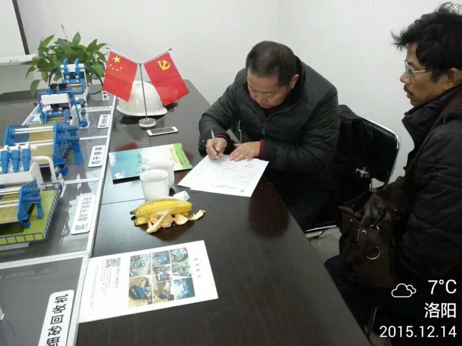 銷售部孫經(jīng)理迎來湖北赤壁客戶簽訂細(xì)砂回收機(jī)合同