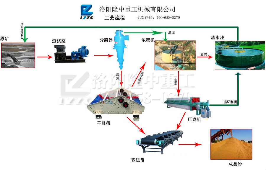 隆中重工XCI型旋流器、g效多頻脫水篩、g效深錐多錐濃密機,皮帶輸送機等。