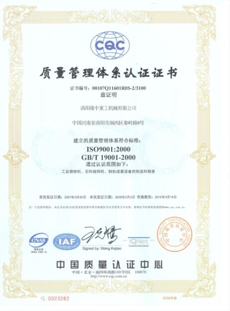 證書也為隆中重工打開國際市場出了不少力。 隆中重工一向重視信譽,這也是一個公司能長期發展的基礎。