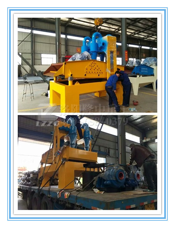 上面設備的顏色和隆中重以往產品的顏色不同,隆中重工細沙回收設備、洗砂回收一體機等產品采用的是藍白色。這次設備根據客戶要求,直接噴漆成黃色的。箱體、機身也發生了變化。這樣的細沙回收設備適合處理量大的生產線,底座比較穩。處理量400立方細沙回收機,加脫水效果。在試機24小時候效果非常好,今天下午已經發貨。