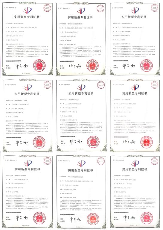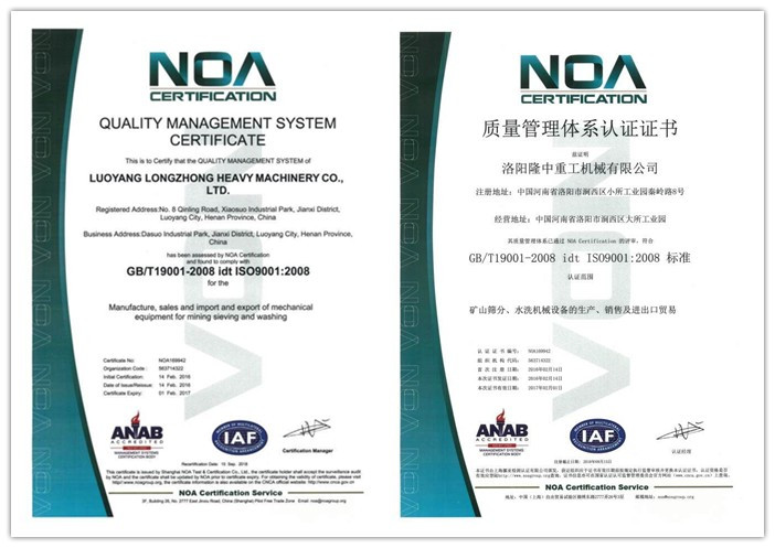 隆中重工設(shè)備取得的證書:
